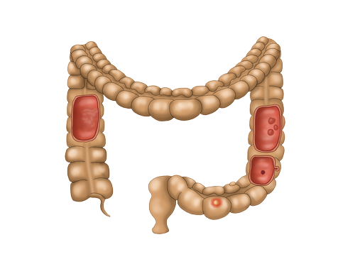 大腸濕濁瘀毒偏重,第四期到末期兼虛寒,溫腸化濁解毒祛毒為主。